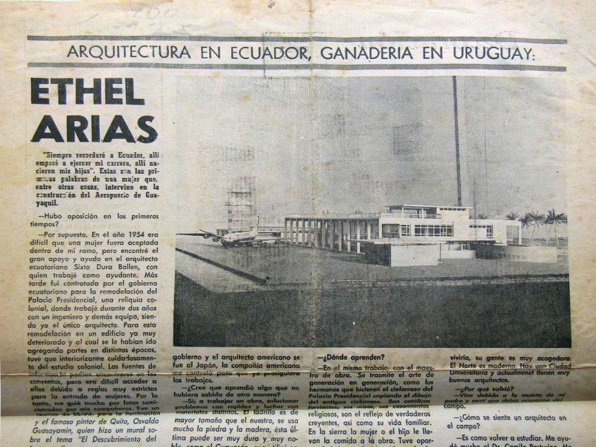 “...una arquitecta, la primera mujer contratada para esta clase de trabajo en Ecuador. No es cortés inquirir sobre la edad de una dama, pero Ethel Arias, la bella esposa de Alfredo León, de ojos negros y de nacionalidad uruguaya, no parece haber cumplido los treinta años. Desde que llegó a Quito en 1955 se ha hecho amiga de sus jóvenes colegas masculinos quieren la han aceptado como uno de ellos” (Américas, 1959, p.12)