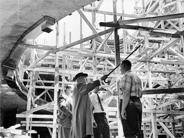 Figura 1. Frank Lloyd Wright en el Guggenheim durante su construcción, Nueva York, 1953.