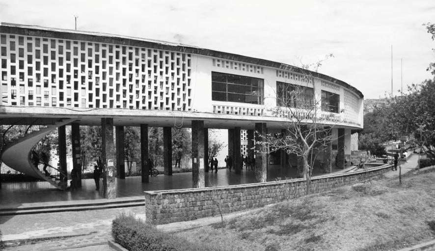 Figura 3. Campus Universitario diseñado por Gilberto Gatto Sobral; Fuente: Fotografía tomada por el autor de la biblioteca de la UCE.
