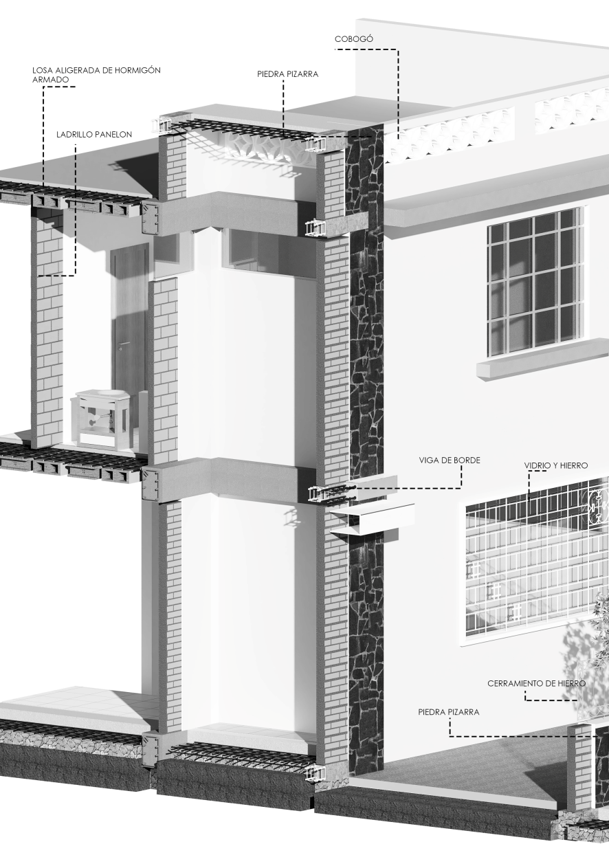 Figura 17. Sección constructiva 01 (3D)- Residencia Valdivieso.