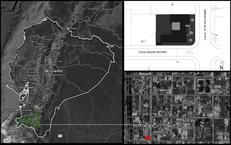 El Solar es rectangular y se encuentra ubicado espacialmente entre las Calles Miguel Riofrio y 18 de Noviembre, siendo esta última, una de las arterias viales más importantes de la ciudad; ya que cuenta con un alto flujo vehicular y peatonal; además, comunica rápidamente el Norte con el Sur. Este solar se encuentra ubicado de tal manera que recepta los rayos directos de la mañana sobre zonas como la sala o estudio y progresivamente por su ubicación recepta también radiación indirecta en la fachada Sur en zonas como las habitaciones.