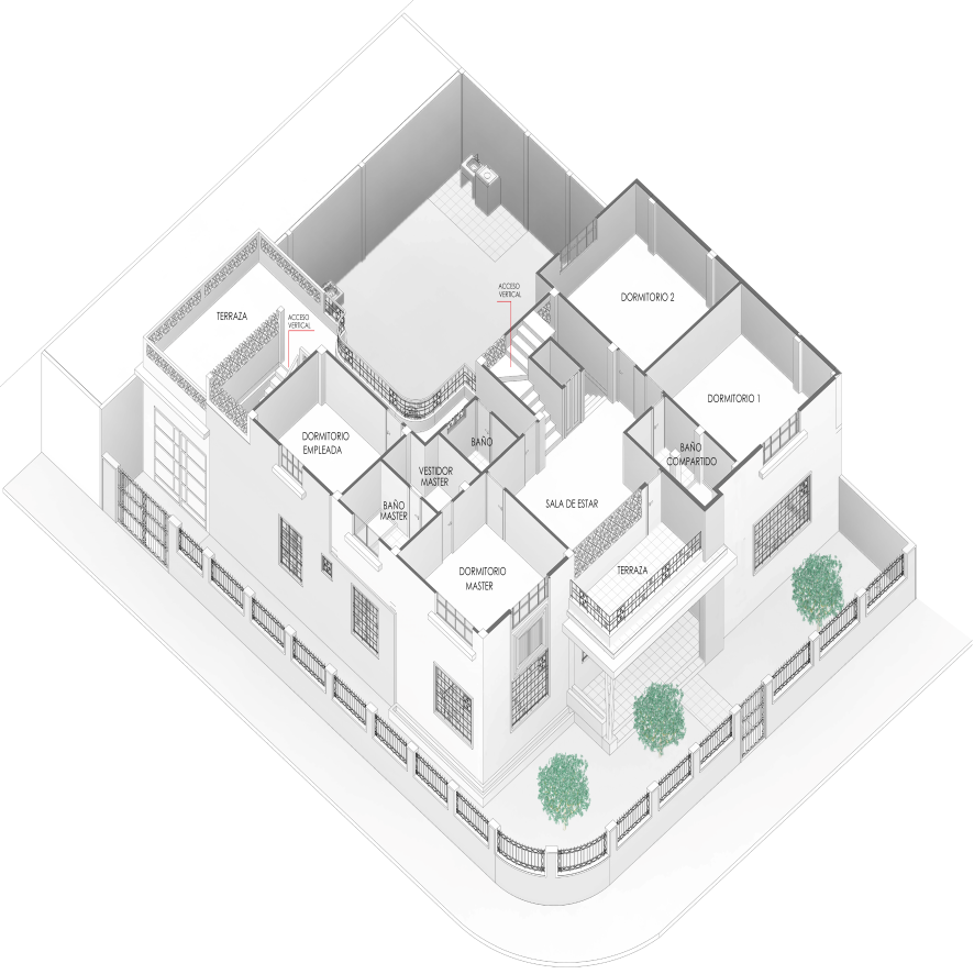 Figura 16. Planta alta (3D)- Residencia Valdivieso.