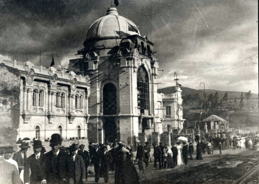 El segundo suceso importante fue la exposición nacional celebrada el 10 de agosto de 1909; para este evento cultural y científico, el presidente de aquellos tiempos el Gral. Eloy Alfaro, dispuso la construcción de un edificio que acoja dicho evento, este edificio denominado el « Palacio de la Exposición » (figura 1), se construyó a base de un sistema mixto de ladrillo, adobe, piezas de cemento y riel de tren, por lo que se podría decir que es el primer edificio que experimentó una aleación entre el hormigón y el hierro. En este evento, se dieron a conocer los logros tecnológicos desarrollados por algunos países de Europa y algunos de Latinoamérica[CITATION Mar89 \l 3082 ].