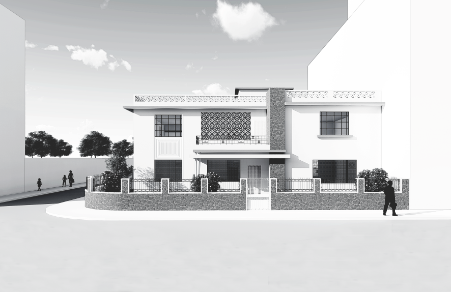 Figura 21. Alzado este (principal) 3D - Residencia Valdivieso.