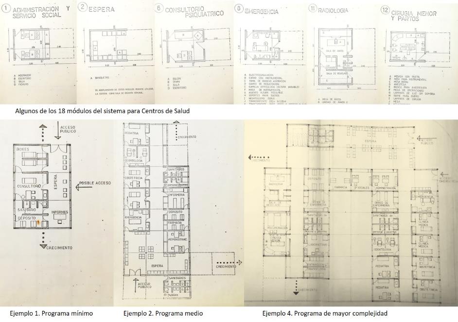 Fuente: Elaboración propia en base a imágenes de la publicación del Área de Salud, Instituto de Investigaciones y Proyectos (1974) “Sistema para la solución de proyectos de Centros de Salud”. Archivo Fermín Estrella