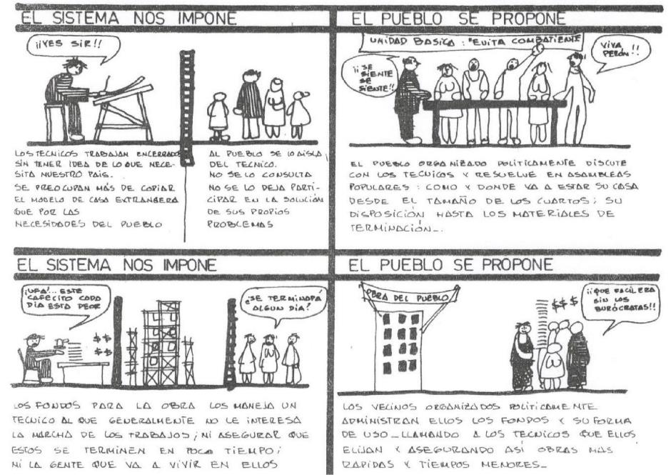 Fuente: Estrella, Tempone y Trincheri en los Equipos político-técnicos JUP (1973) Construcciones Masivas con Participación Popular. Buenos Aires: Centro de Estudiantes de Arquitectura FAU.