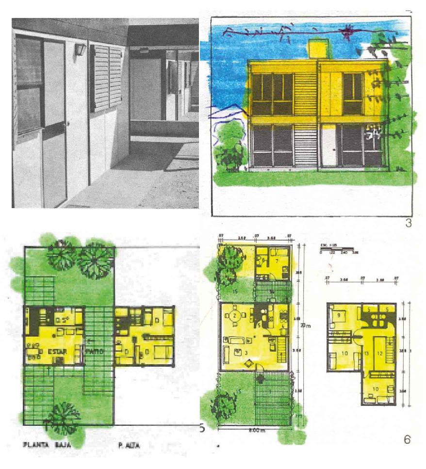 Figura 3. Elaboración propia en base a imágenes de las viviendas realizados para el Instituto de Promoción y Planificación de la Vivienda de Rio Negro, Estrella, Tempone y Trincheri (1972-1973).