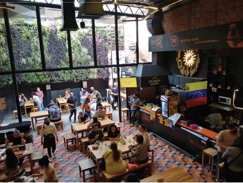 Cordero y Salinas (2017), exponen un sintetizado análisis del mercado Roma, que surge de la tendencia de gourmetización, donde se escenifica un determinado espacio con la finalidad de crear nuevas y exóticas experiencias de consumo. Esto origina el despoblamiento de la zona al ser un equipamiento que no atiende las necesidades de consumo de la población local; no obstante, sigue siendo un modelo que se ha posicionado en el contexto actual y que sigue reproduciéndose en la Ciudad de México. (Figura 5)