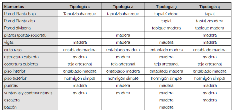 En Ecuador, el uso del sistema constructivo en tierra es el más usado en la sierra, al respecto el historiador Federico González Suárez (1890, p. 85) define que "Las casas se construían ordinariamente de tierra en las poblaciones interandinas, empleando como material de construcción para las paredes el adobe, al que le sabían dar consistencia mezclando y amasando el barro con paja”, además, se pueden encontrar diferentes tipologías arquitectónicas y constructivas que responden al piso climático donde se asientan (Correa, 2008).