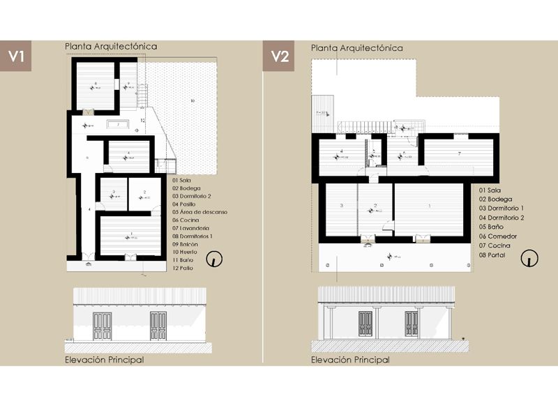 Figura 4. Tipología V1 (un piso sin portal), Tipología V2 (un piso con portal). Fuente: Los autores