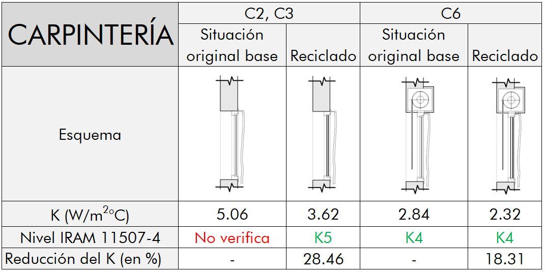 doblada y vidrio simple) y C3 (carpintería con marco y hoja de