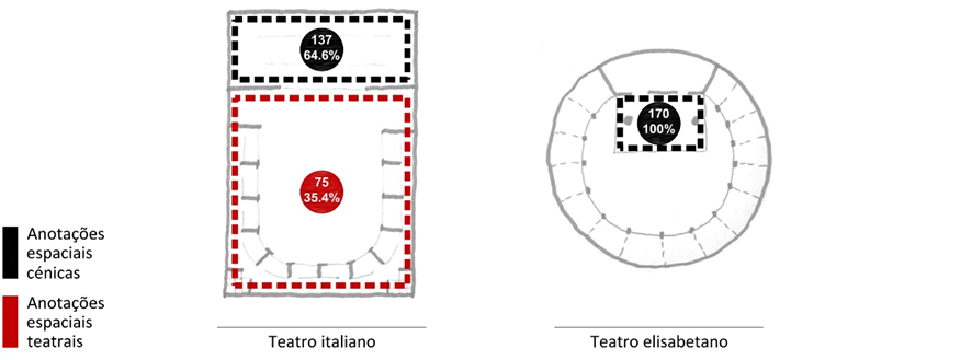 Desta forma, confirma-se através desta quantificação dos paratextos que o texto dramático influencia a arquitetura teatral e, da mesma forma, é possível afirmar quantitativa e qualitativamente que os autores, neste caso Shakespeare e Pirandello, tinham consciência das possibilidades e limitações dos seus espaços dramáticos síncronos convencionais, condicionando as ações e a representação das suas obras desde o momento da criação literária.