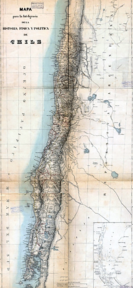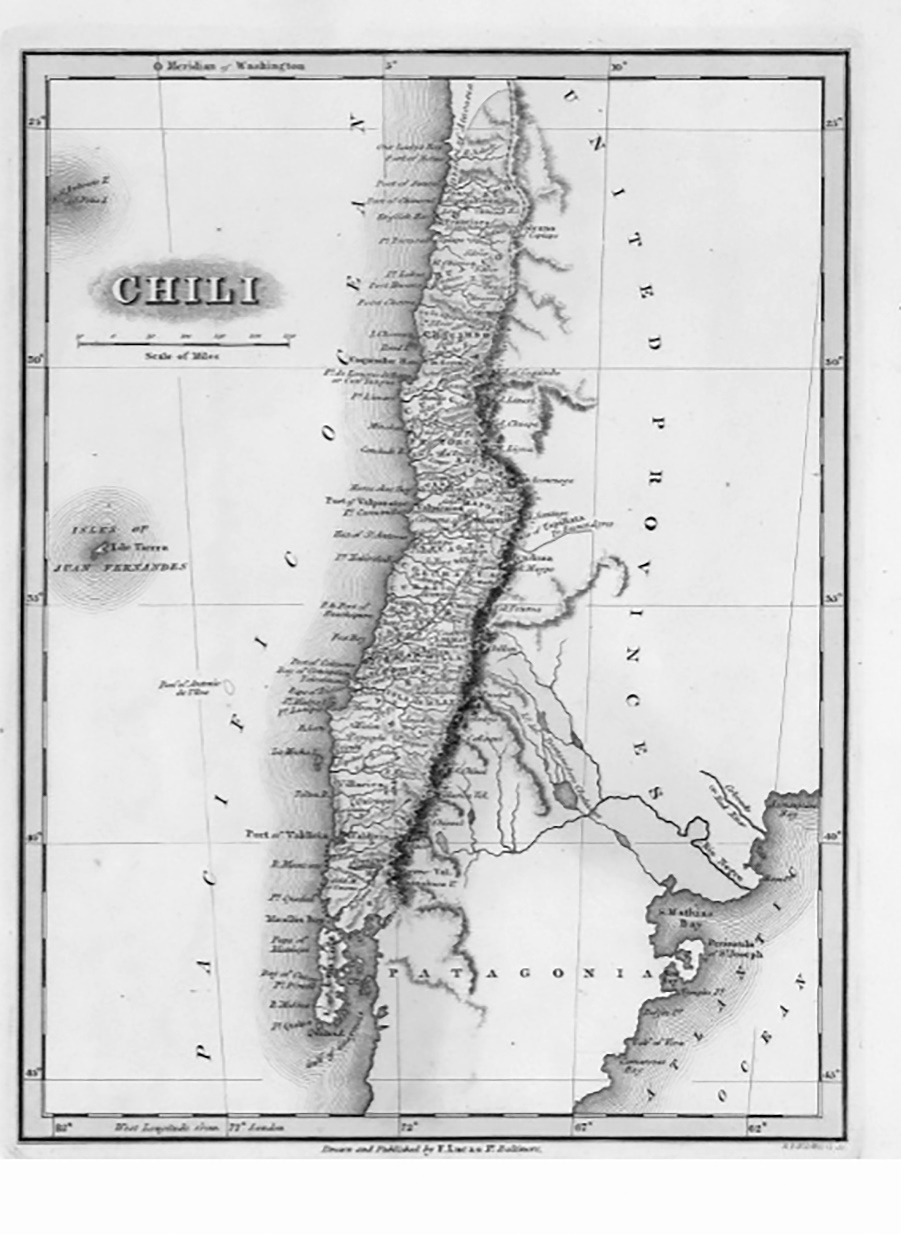 La capitanía general de Chile, según expone Cristián Gazmuri, era una tierra difusa e irrelevante entre los Virreinatos del Perú y Del Rio de la Plata, identificada como pobre incluso desde antes de los tiempos de la colonia. Su independencia en 1818 y renombramiento como República de Chile, no significo grandes modificaciones estructurales de sus instituciones, por ejemplo su economía, mayormente privada, perpetuó su abrazo con las actividades agrícolas, y tal percepción sobre la austral y joven nación se mantuvo. Otro factor que influyó en esta afirmación, es su ubicación aislada respecto de las grandes capitales europeas, sobre todo, porque los registros de la época indicaban la ausencia tanto de “grandes cantidades de metales preciosos” […], como de “una agricultura de productos exóticos” (Gazmuri, 1999). La falta de estos atributos lo acercaban al concepto de pobreza y lo mantenían fuera de la línea de interés de las grandes culturas. Existía la percepción que Chile era solo un lugar periférico e irrelevante, una tierra “separada de las ricas llanuras de Argentina por la cordillera de los Andes, de Bolivia y Perú, por una vasta franja de desierto poco amable, la incipiente república seguía estando muy aislada del resto del mundo” (Collier, 2003). (fig.1).