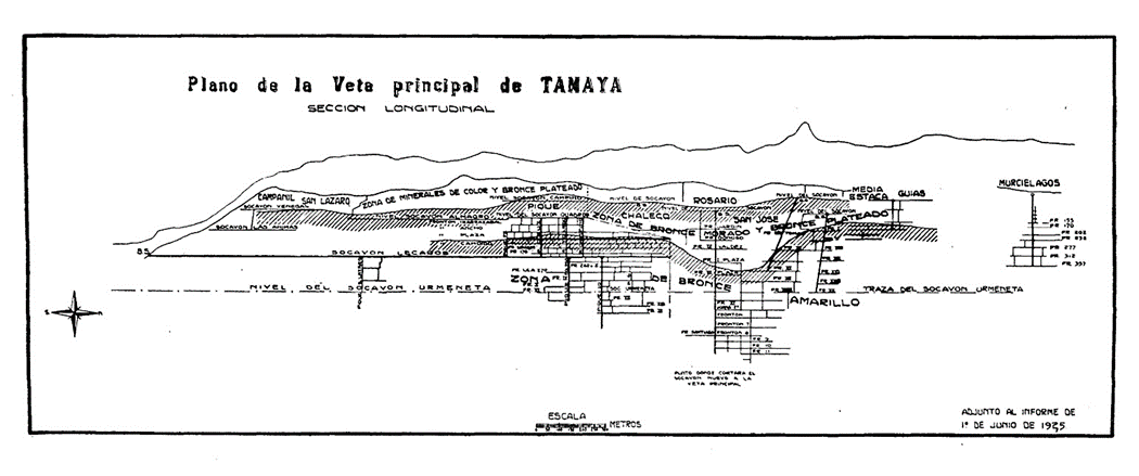 de la veta principal de la mina Tamaya. Sección longitudinal.