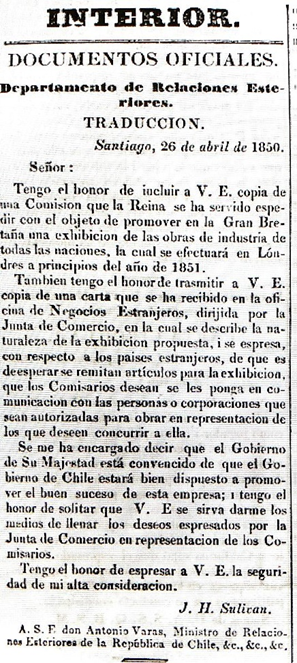 El 11 de octubre de 1851 fue la clausura de The Great Exhibition, la primera exposición universal del siglo XIX. Desde entonces, Chile ha participado en catorce exposiciones de la misma connotación.