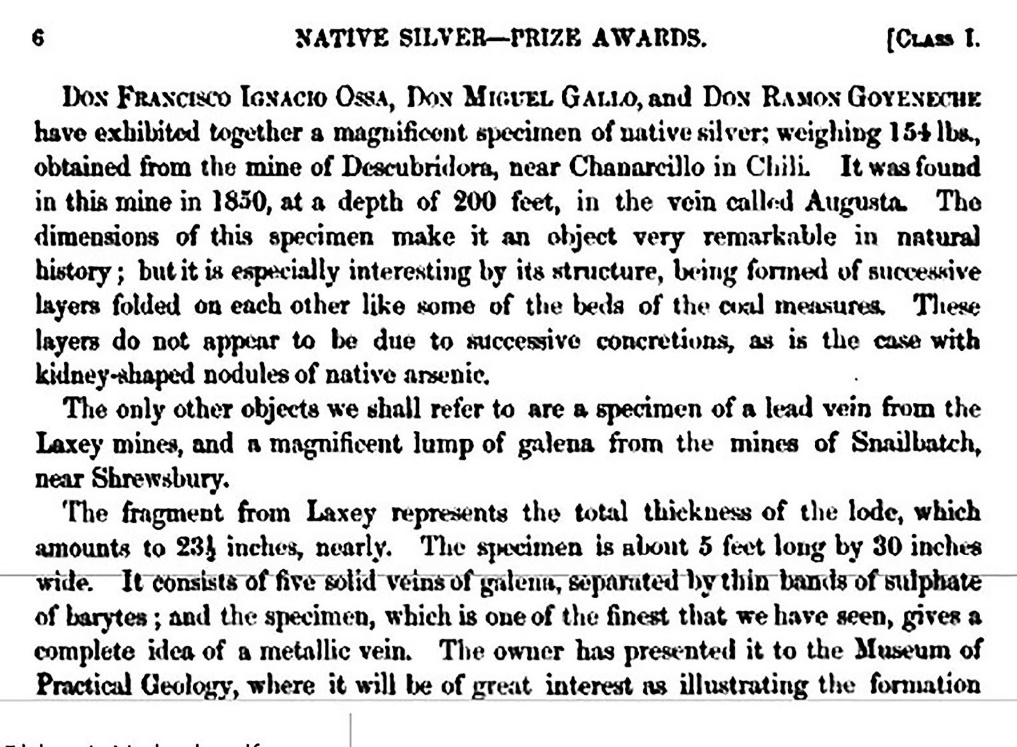 plata provenía de la Descubridora, distrito de Chañarcillo