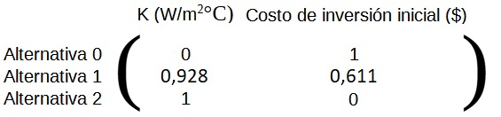 criterio y se reescribe la matriz anterior con valores normalizados.