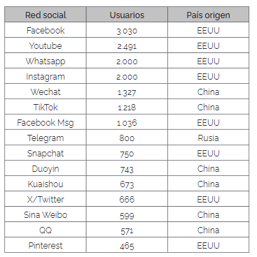 colonización de datos donde han alcanzado a ser la cuarta red social