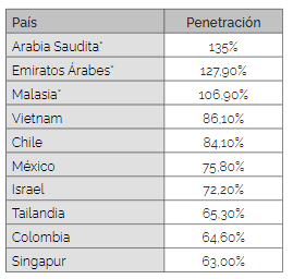 fuente indica que pueden ser mayor al 100% por cuentas duplicadas y