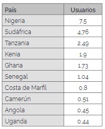 con un alcance en acciones publicitarias de 27.8 millones en África