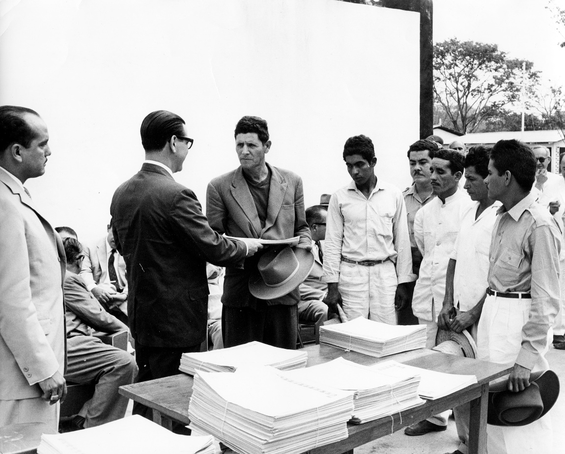 This paper aims to highlight the differences and continuities in certain official policies for rural development in the Venezuelan countryside before and after the passing of the Agrarian Reform Law in 1960. This reform, promoted by the nascent Venezuelan democracy after the fall of the military dictatorship of Marcos Pérez Jiménez in 1958, aimed to eliminate the dominant latifundium system inherited from the colonial era and redistribute land among poor peasants, enabling their economic and social emancipation through the notion of the social function of property (Ley de Reforma Agraria, 1960). [Fig.1] President Rómulo Betancourt wanted the agrarian reform to benefit the greatest number of peasants as quickly and extensively as possible, as he considered the reform a debt that democracy owed its peasantry after previous attempts to democratize the agrarian structure were hindered by the dictator. However, the scale and speed of the enterprise soon proved to be a challenge, and much improvisation took place during the early years of agrarian reform (Machado, n.d.).