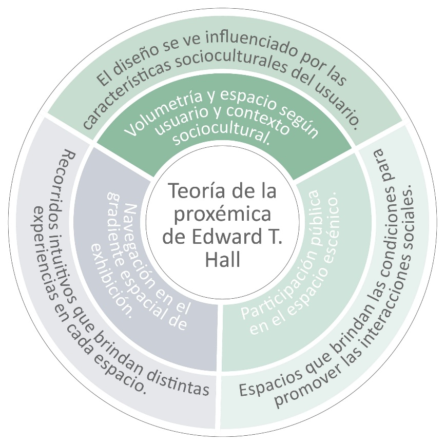 Los espacios culturales son fundamentales en las ciudades de todo el mundo, promoviendo la coexistencia y la simultaneidad de actividades, distinguiendo así la cultura ciudadana en un amplio espectro (Villac, 2018). Entendiendo esta dinámica, se reconoce que la sociedad moderna desarrolla su competitividad a través del pensamiento y una identidad activa, pues es una era en donde la cultura mejora la calidad de vida (Park, 2018). Al contemplar este comportamiento en distintos lugares, podemos decir que los usuarios y el espacio están inmersos en una cultura que no solamente comunica algo, sino que admite comprender los procesos de uso en su examinación funcional (Méndez, 2013). Dado que la arquitectura nos permite identificar criterios utilizados en un objeto arquitectónico, en 1996, el antropólogo Edward T. Hall publicó Las dimensiones ocultas; en esta obra acuñó el término proxémica para ilustrar cómo el hombre y su entorno participan en moldearse mutuamente (Lui, 2015), esto define la teoría de la proxémica utilizada en este estudio. Por lo tanto, el objetivo de la investigación es determinar de qué manera la teoría condiciona el diseño de espacios que promuevan la interacción social, la participación pública y una sensación fluida y diversa. (Sáez, 2016).
