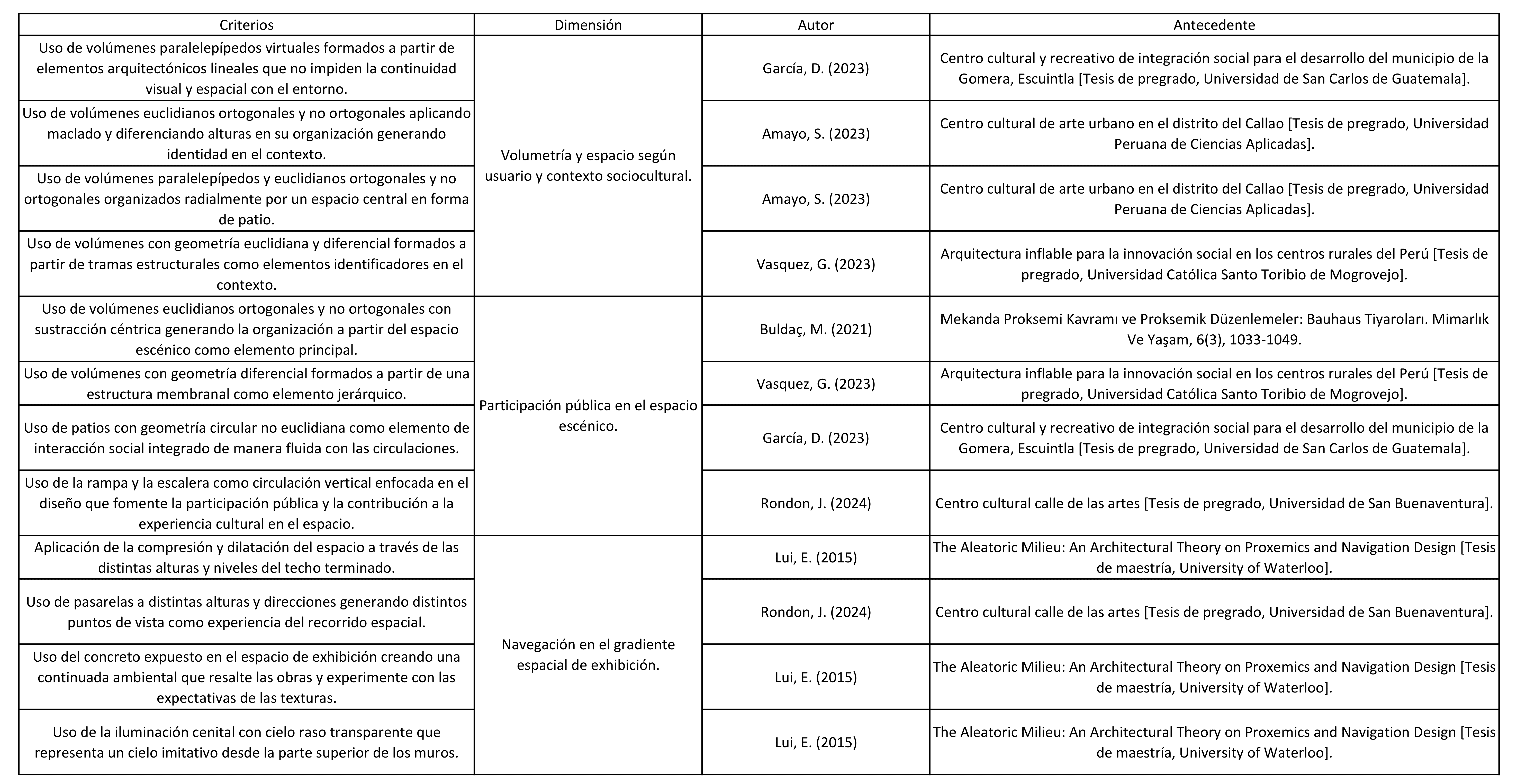 En relación con los hallazgos de la Tabla 02 sobre los criterios arquitectónicos, se destaca el énfasis del autor en la creación de espacios que generan un magnetismo hacia su interior, atrayendo directamente a las personas a su centro. Esto facilita la exploración del objeto arquitectónico con diversas experiencias mediante la implementación de los distintos criterios hallados en esta investigación.