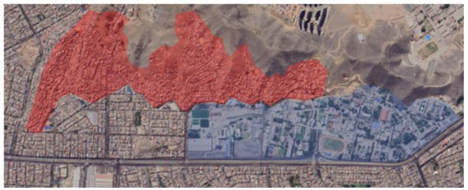 Figura 2. Asentamiento informal colindante al Campus de la Universidad Nacional de Ingeniería, Lima.
