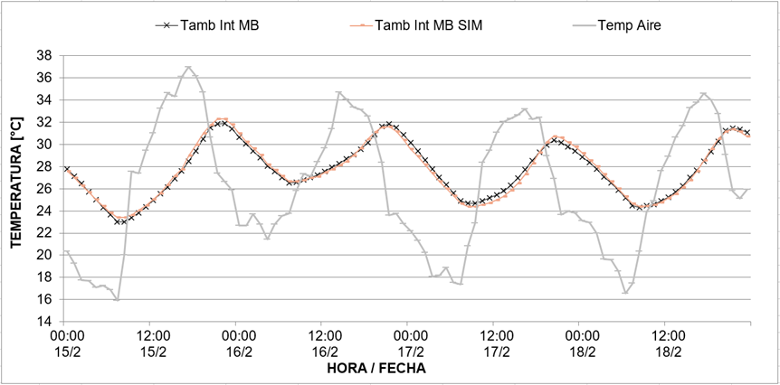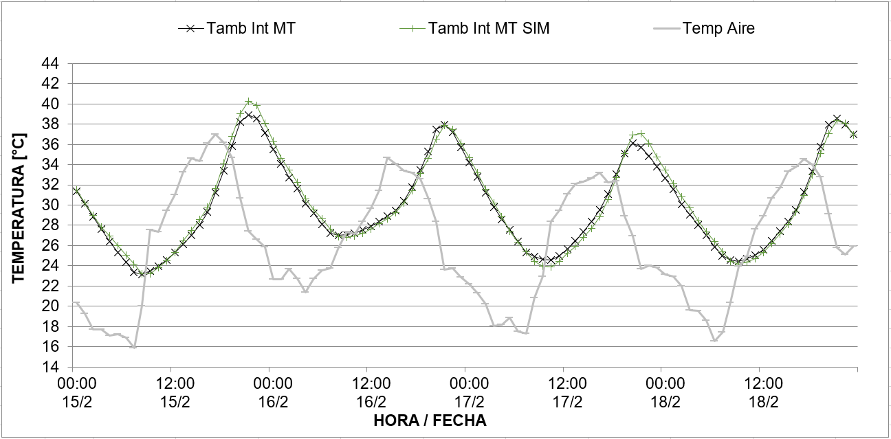 interna de cada muro. Los datos se registraron cada 15 minutos.