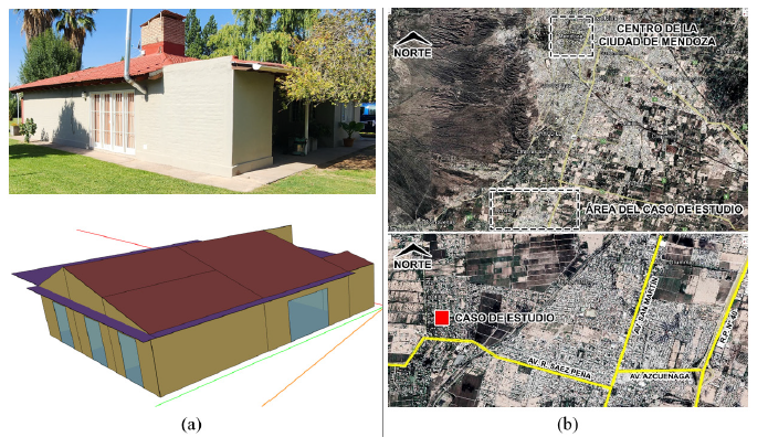 Para la elección del caso de estudio se establecen dos criterios a fin de asegurar representatividad dentro del ámbito residencial en el AMM. El primero tiene en cuenta que el entorno urbano tenga un mayor desarrollo en la última década. Esto se refleja en el área de baja densidad constructiva (< 2m3/m2) que se ubica en la periferia de la ciudad. El segundo criterio considera la tipología edilicia más difundida, que es la de vivienda en un nivel con perímetro expuesto y posibilidades de incorporación de la estrategia de FVT. Por tanto, el caso de estudio seleccionado corresponde a una vivienda unifamiliar másica en planta baja, de perímetro expuesto, tipología residencial representativa del crecimiento urbano en baja densidad en el AMM y que ofrece posibilidades viables para la incorporación de la estrategia de FVT.