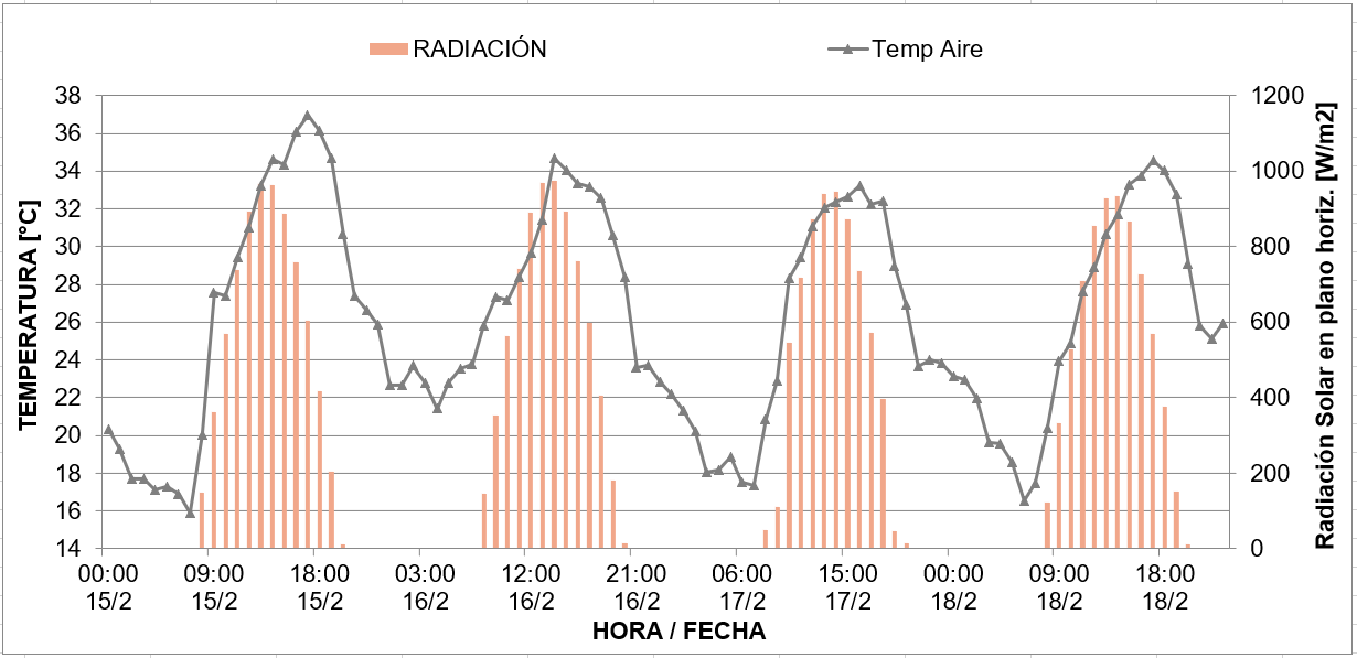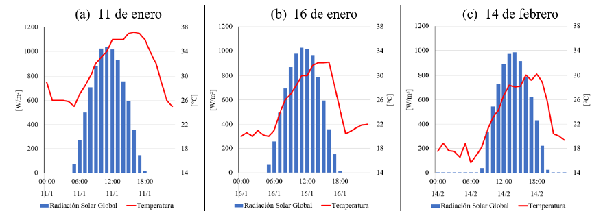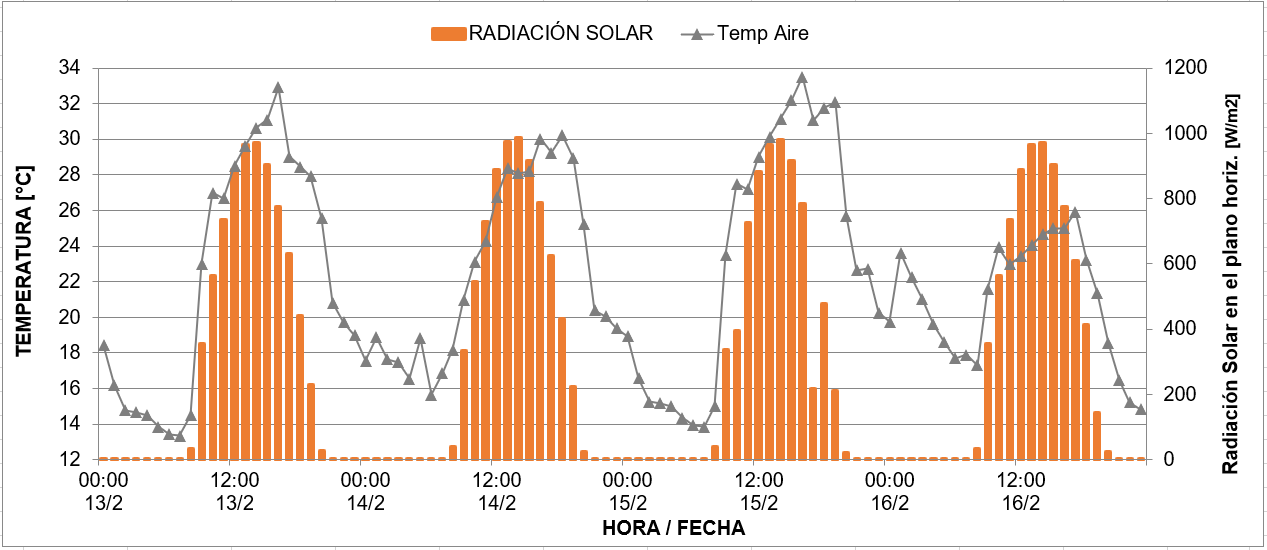 fueron: temperatura y radiación solar exterior; temperatura de la