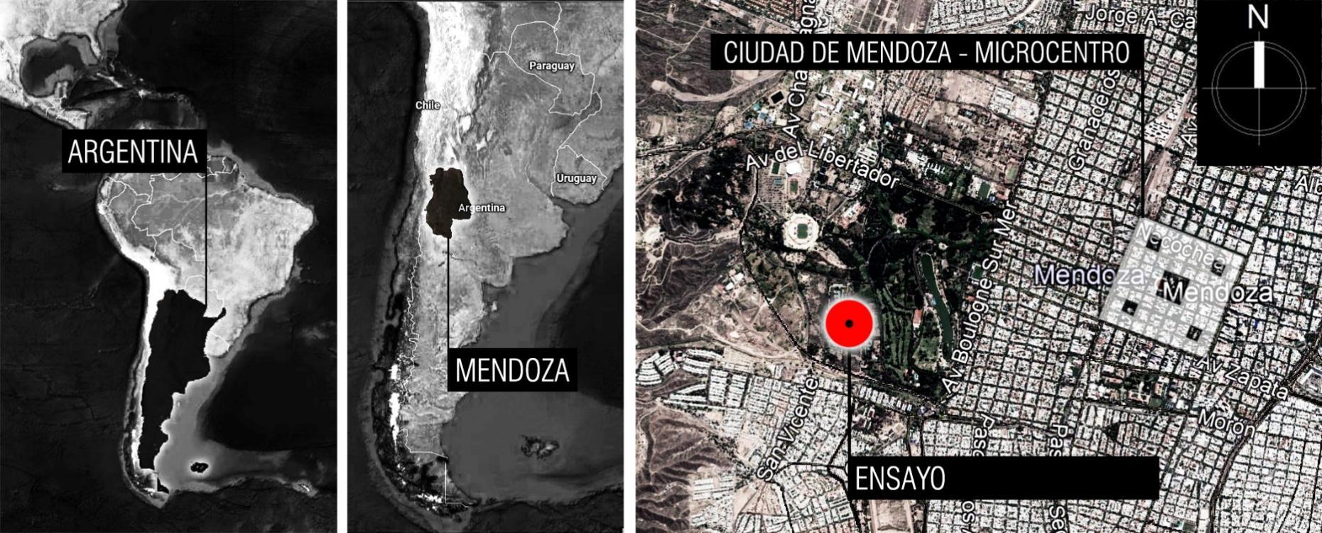 El Área Metropolitana de Mendoza (AMM) donde se localiza esta investigación, se emplaza en el centro Oeste de la República Argentina (32.5° Latitud Sur, 68.5° Longitud Oeste). Su clima es árido-desértico -BWk, Köppen-Geiger clasificación climática-. Se caracteriza por veranos calientes e inviernos fríos, con elevados valores de amplitud térmica diaria y estacional. Su microclima presenta altos niveles de irradiancia solar -principalmente en los planos orientados al este y al oeste-, bajas velocidades de viento y escasas precipitaciones. Como consecuencia, la magnitud de su Isla de Calor alcanza los 10 °C, lo que aumenta un 20% la demanda de energía auxiliar para refrigeración (Correa, Ruiz, Cantón, & Lesino, 2012).
