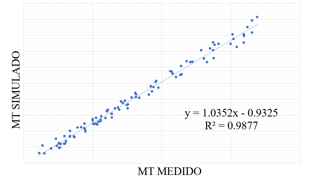 la simulación a la monitoreada en los boxes de ensayo. Este