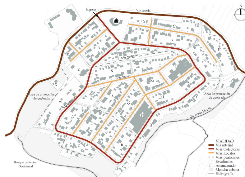 b. El sistema vial, por ser el entramado que conecta, comunica, sostiene y hace que el barrio fluya.