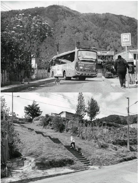 Las pendientes forzadas originan muchos conflictos viales, radios de giro problemáticos para los buses de transportación pública (figura 9), dificultad en la maniobra vehicular en vías de dos sentidos por su sección de 5,5 metros, además no hay lugares de estacionamiento temporal.