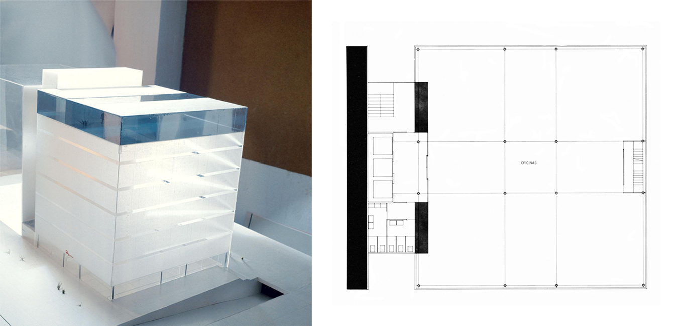 Como se expone a continuación, si la segunda mitad de la década de 1950 y los años 60 vienen marcados por los grandes contendores industriales —como la nave para los Talleres Aeronáuticos de TABSA (Madrid, 1956-58), la Central Lechera CLESA (Madrid, 1958-61), las naves para el CENIM (Madrid, 1963-65) o el Pabellón Polideportivo de Pontevedra (1964-67)—, donde los recursos técnicos se muestran de manera explícita, a partir de los años 70, estos dan paso a cubos funcionales, caracterizados por una progresiva tendencia a la ocultación o atenuación expresiva de unos medios tecnológicos cada vez más avanzados. Ejemplos de ello serían las propuestas para los concursos de Bankunión y Aviaco (Madrid, 1970 y 1975), el edificio para la Caja Postal y Depósito de Valores (Madrid, 1972-77) o la nueva Sede de Correos y Telecomunicaciones de León (1981-83). No se trata de ninguna paradoja: lejos de concebir la arquitectura como una manifestación exhibicionista de recursos, el arquitecto aprovecha los avances técnicos para facilitar la materialización de los proyectos, eludir el sufrimiento que conlleva el hecho constructivo y mejorar la calidad de vida.