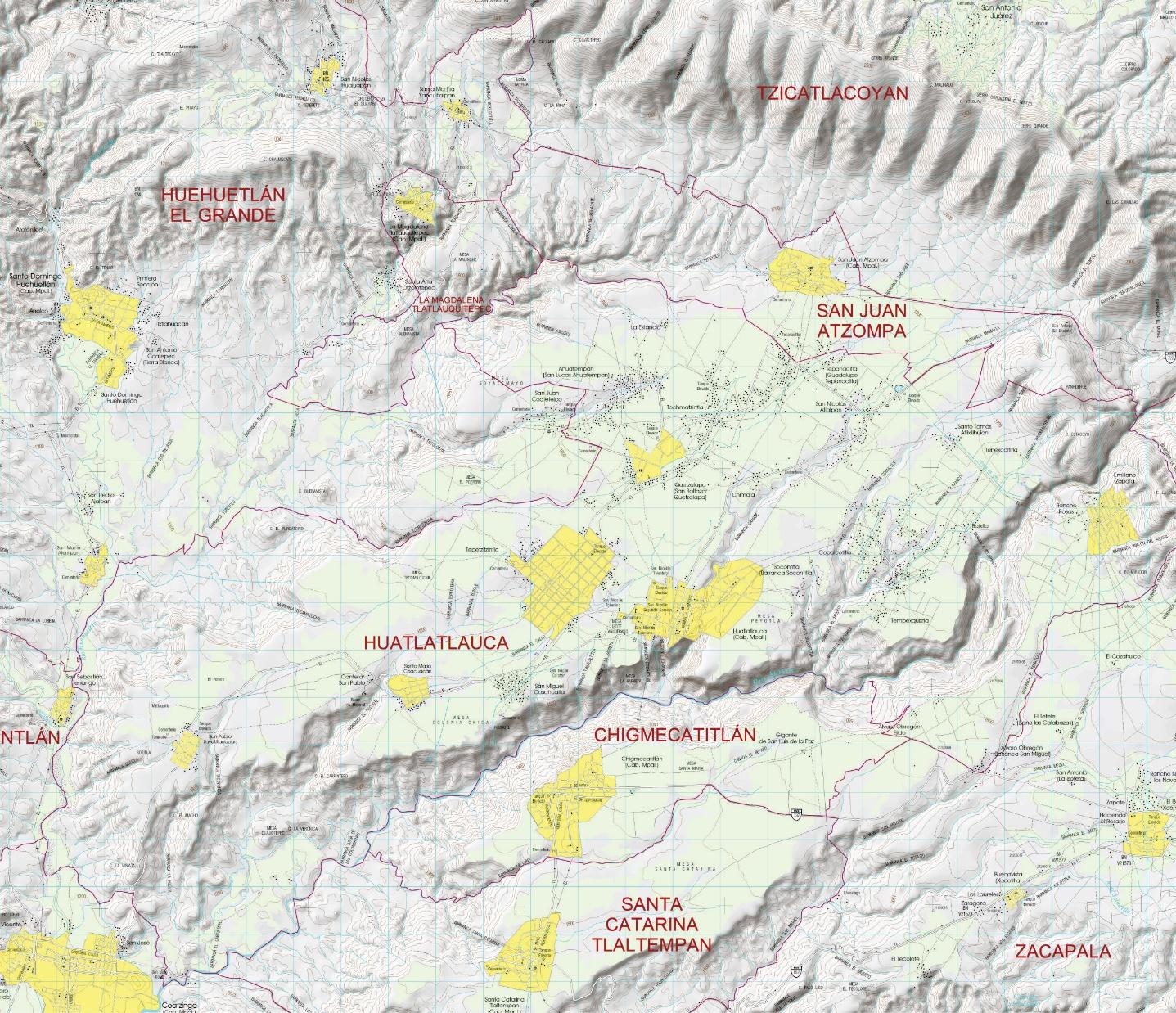 topográfico municipal, escala 1:40 000, Huatlatlauca, México.