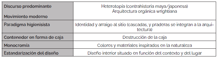 orientación horizontal y levedad oriental. Deconstruye la forma maya