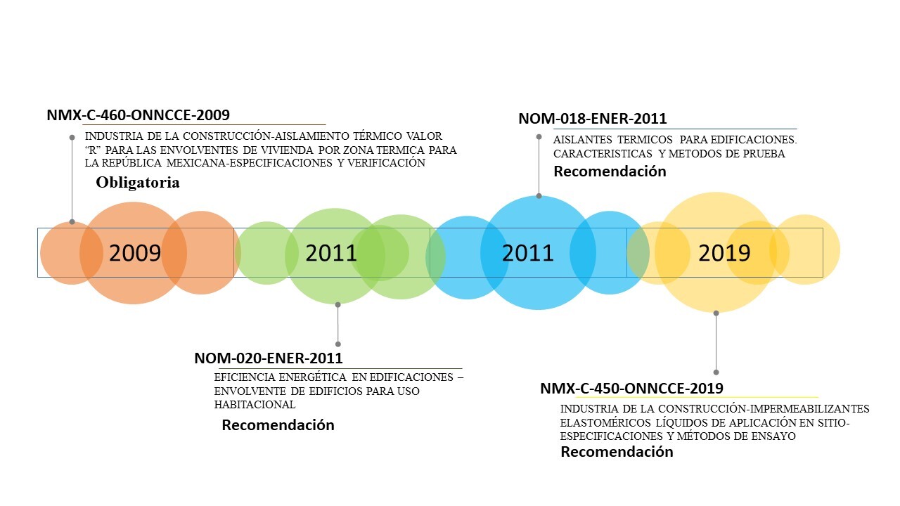 Diario Oficial de la Federación. (2009). NMX-C-460-ONNCCE-2009 BUILDING INDUSTRY – INSULATION – “R” VALUE FOR THE HOUSING ENVELOPE BY THERMAL ZONE FOR MEXICAN REPUBLIC – SPECIFICATION AND VERIFICATION.