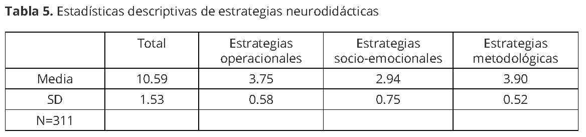Tabla 5: Estadísticas descriptivas de estrategias neurodidácticas