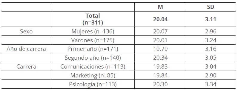 En la variable satisfacción académica los grupos de estudiantes que cursan el segundo año de universidad y los estudiantes de la carrera de Psicología mostraron valores superiores al promedio general obtenido (ver tabla 7).