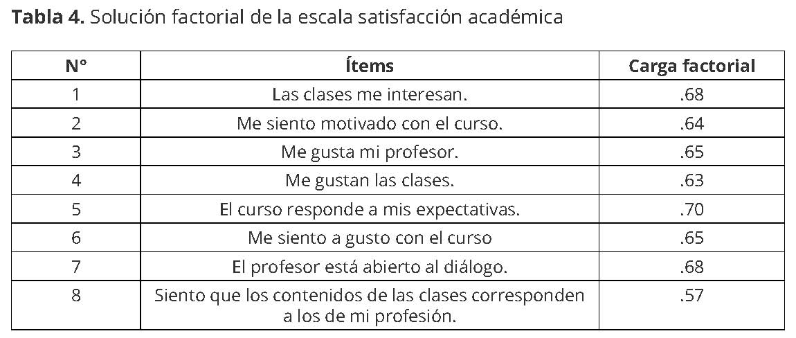 Tabla 4: Solución factorial de la escala satisfacción académica