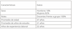 3) 12 docentes en la prueba piloto, considerando dos profesores de preescolar, dos de primaria menor (de 1.º a 3.º grado), dos de primaria mayor (de 4.º a 6.º grado), dos de secundaria, dos de bachillerato y dos de nivel licenciatura.
