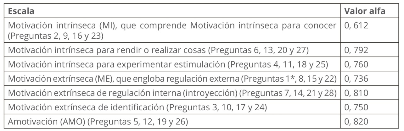 Respecto a la validación del instrumento de motivación mediante el cálculo del alfa de Cronbach se obtuvieron los siguientes datos: