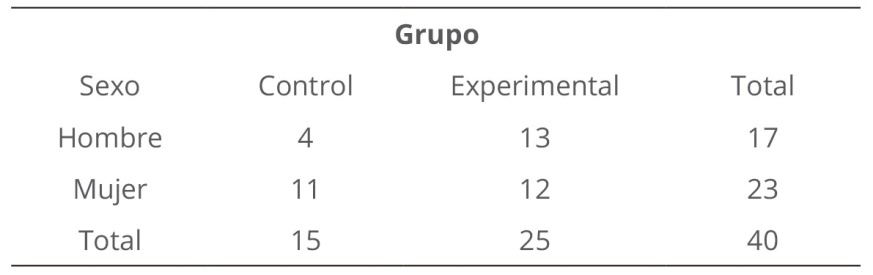Tabla 2: Distribución de los participantes en el estudio, por sexo y por grupo.