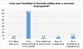 Con el propósito de ahondar aún más en la utilización de la pregunta como estrategia pedagógica se buscó determinar, a través de un cuestionamiento de tipo cerrado, con qué finalidad el docente utiliza más habitualmente la pregunta en el aula de enseñanza media.