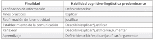 Fuente: elaboración propia. Referencia para habilidades cognitivo-lingüísticas, Jorba (2000).