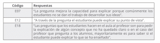 Un informante indica que: “Utilizaría la interrogante para verificar que los estudiantes presenten claridad sobre el tema enseñado y que sean capaces de llevar su conocimiento a una habilidad superior, como el argumentar” (estudiante 9).