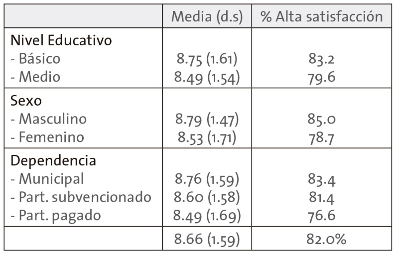 Nota: Alta satisfacción reúne valores de respuesta entre 8 y 10.