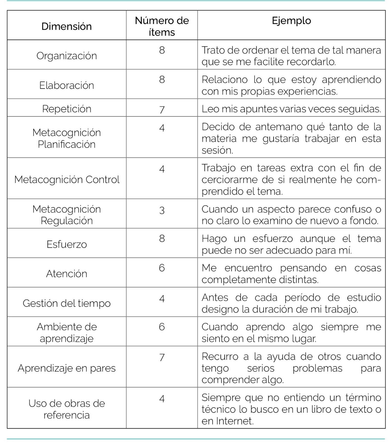 Kaldo, I. y Õun, K. (2019). Developing of factor structure for learning strategies of Estonian students in mathematics at the university level [Desarrollo de la estructura factorial para las estrategias de aprendizaje de los estudiantes estonios de matemáticas a nivel universitario]. Problems of Education in the 21st Century, 77(3), 338. http://www.scientiasocialis.lt/pec/node/files/pdf/vol77/338-348.Kaldo_Vol.77-3_PEC.pdf